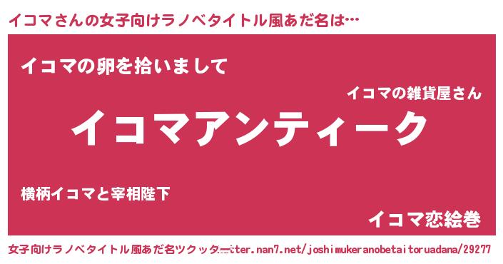 | 男性向けラノベタイトル風あだ名 | 『魔法科高校のイコマ』 |