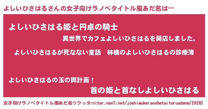 | 男性向けラノベタイトル風あだ名 | 『魔弾の王とよしいひさはる』 |