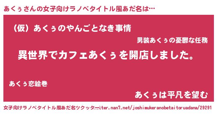 | 男性向けラノベタイトル風あだ名 | 『誰もが恐れるあのあくぅが、ぼくの専属メイドになるようです。』 |