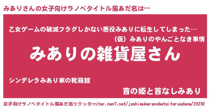 | ヒーロー風カッコイイあだ名 | 『ウルトラみありマン』『仮面ミアダー』 |