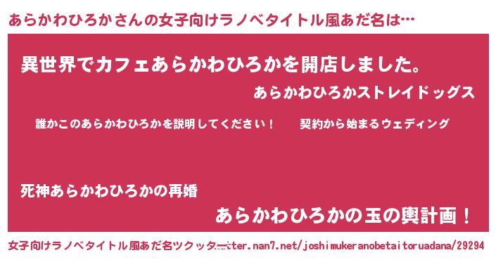 | 男性向けラノベタイトル風あだ名 | 『アラカワヒロカアートオンライン』 |