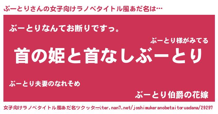 | 男性向けラノベタイトル風あだ名 | 『はたらくぶーとりさま!』 |