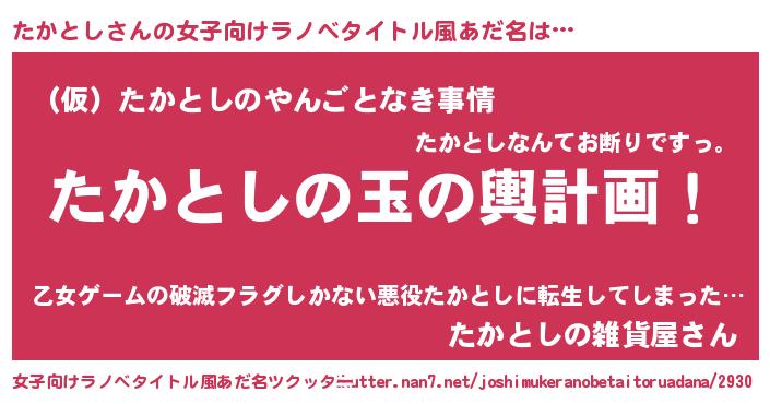 | 意味不明あだ名 | 『なめこ科たかとし属』『自称たかとし』 |