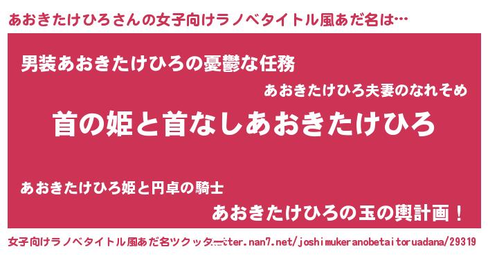 | 男性向けラノベタイトル風あだ名 | 『はたらくあおきたけひろさま!』 |