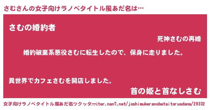 | 男性向けラノベタイトル風あだ名 | 『転生したらさむだった件』 |
