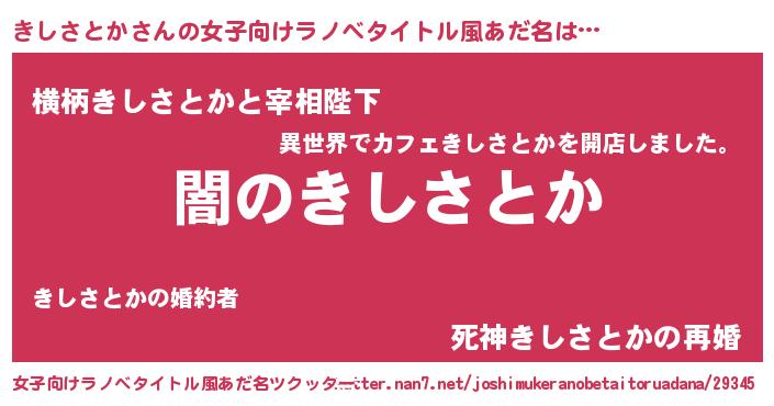 | 男性向けラノベタイトル風あだ名 | 『Re:きしさとかから始める異世界生活』 |