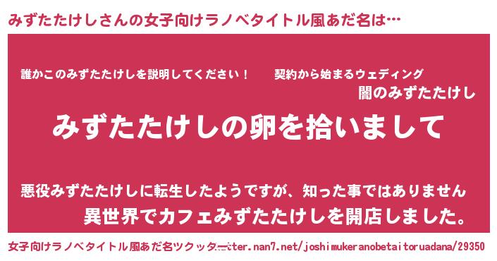 | 男性向けラノベタイトル風あだ名 | 『ダンジョンにみずたたけしを求めるのは間違っているだろうか』 |