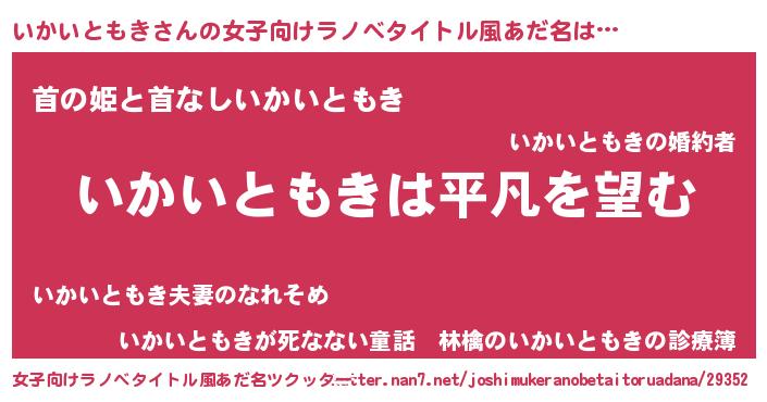 | 胡散臭い通販商品みたいなあだ名 | 『信頼と実績のサプリメント…その名も「いかいともき」』 |