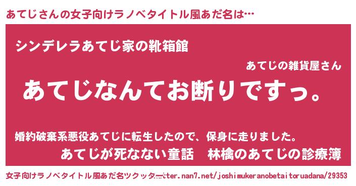 | 意味不明あだ名 | 『自称あてじ』『住所不定無職あてじ(91歳)』 |