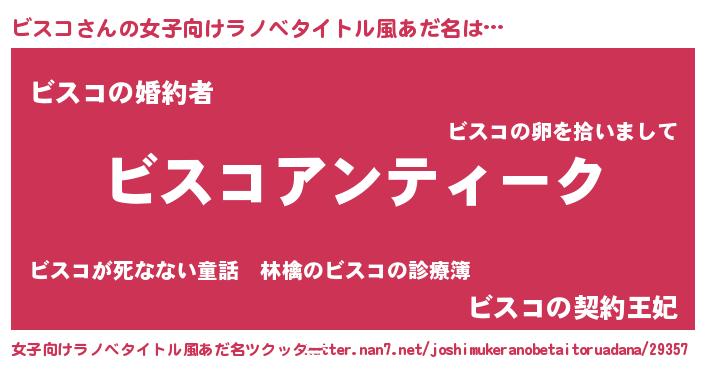 | 胡散臭い通販商品みたいなあだ名 | 『テレビで話題のアガリクス…その名も「ビスコ」』 |