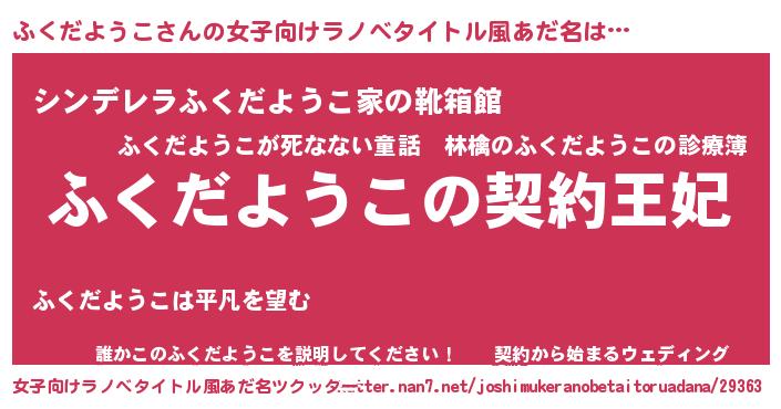 | 胡散臭い通販商品みたいなあだ名 | 『来世でも幸せになれる健康食品…その名も「ふくだようこ」』 |