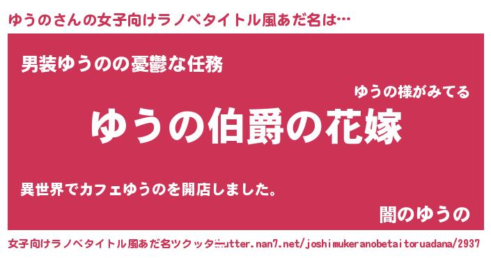 | 男性向けラノベタイトル風あだ名 | 『うちの娘の為ならば、俺はもしかしたらゆうのも倒せるかもしれない。』 |