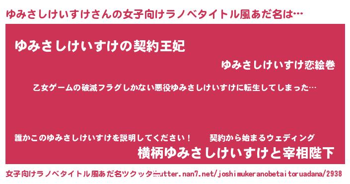 | 男性向けラノベタイトル風あだ名 | 『魔弾の王とゆみさしけいすけ』 |