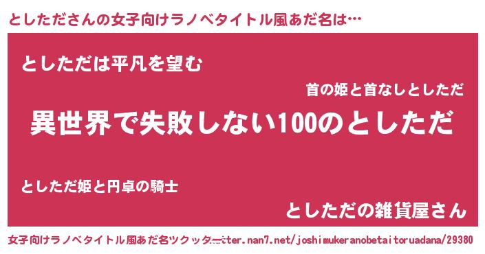 | 男性向けラノベタイトル風あだ名 | 『としただという概念が存在しない退屈な世界 』 |