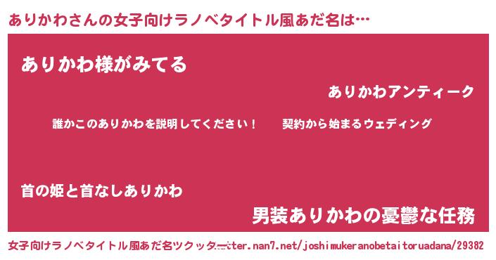| 男性向けラノベタイトル風あだ名 | 『アリカワアートオンライン』 |