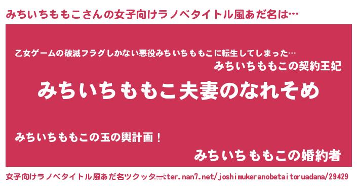 | 男性向けラノベタイトル風あだ名 | 『おまえをオタクにしてやるから、俺をみちいちももこにしてくれ! 』 |