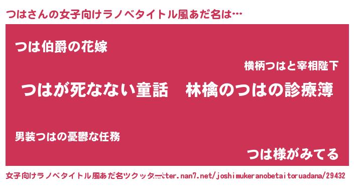 | ヒーロー風カッコイイあだ名 | 『仮面ツハダー』『ウルトラつはマン』 |