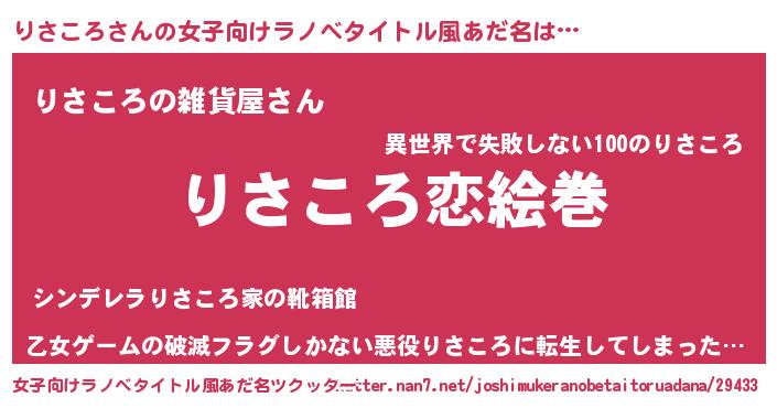 | ヒーロー風カッコイイあだ名 | 『慈愛の使者りさころ』『仮面リサダー』 |