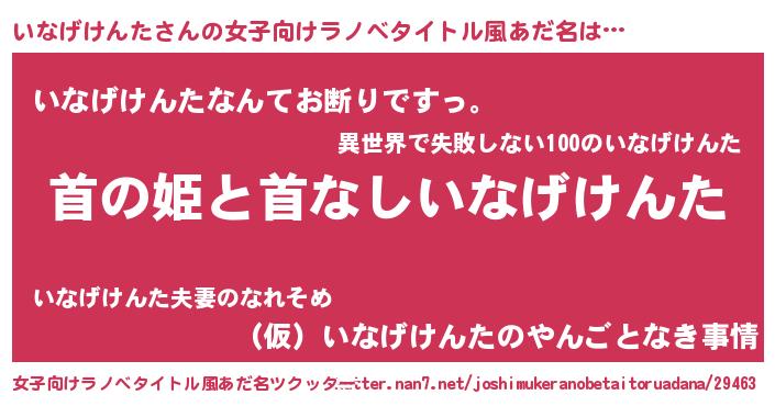 | 男性向けラノベタイトル風あだ名 | 『はたらくいなげけんたさま!』 |