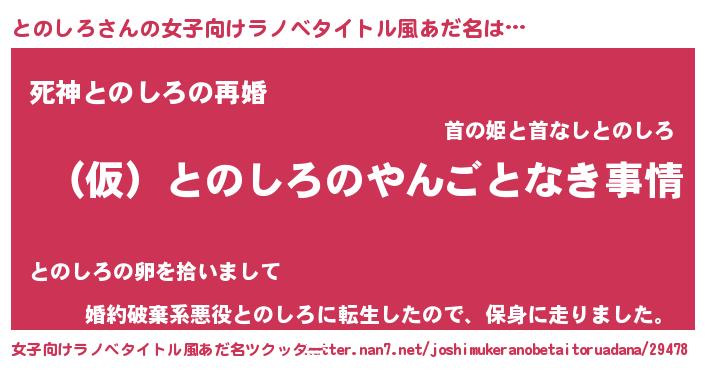 | 胡散臭い通販商品みたいなあだ名 | 『必ず成功する水晶球…その名も「とのしろ」』 |