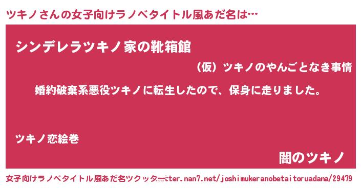 | 男性向けラノベタイトル風あだ名 | 『ツキノスレイヤー』『緋弾のツキノ』 |