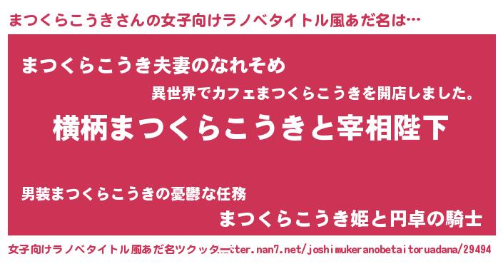 | 男性向けラノベタイトル風あだ名 | 『まつくらこうきに滅ぼされるだけの簡単なお仕事です』 |