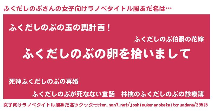 | 男性向けラノベタイトル風あだ名 | 『ふくだしのぶの嫁は女の子じゃないと思った?』 |