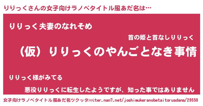 | 男性向けラノベタイトル風あだ名 | 『りりっくの憂鬱』 |