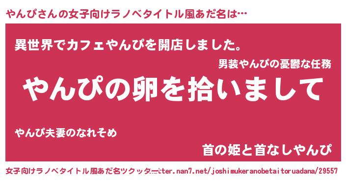 | 胡散臭い通販商品みたいなあだ名 | 『伝統あるペンダント…その名も「やんぴ」』 |