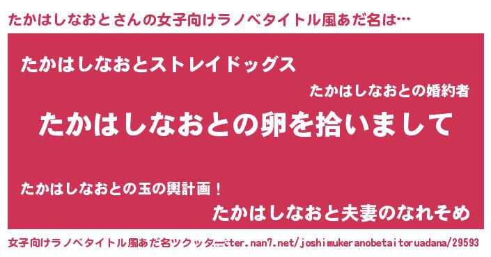 | 男性向けラノベタイトル風あだ名 | 『たかはしなおとの嫁は女の子じゃないと思った?』 |