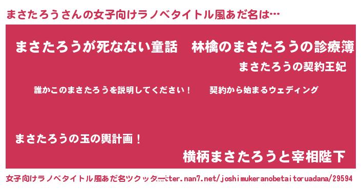 | 男性向けラノベタイトル風あだ名 | 『マサタロウアートオンライン』 |