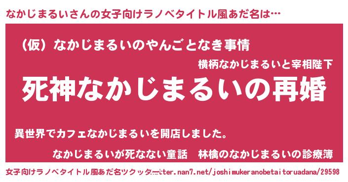 | 男性向けラノベタイトル風あだ名 | 『ノーゲーム・ノーナカジマルイ』 |