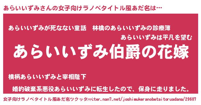 | 意味不明あだ名 | 『あらいいずみフォーエバー』 |