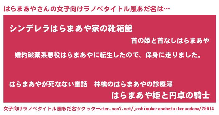 | ヘコむあだ名 | 『はらっふぃ~』『はらまあや(遠い目)』 |