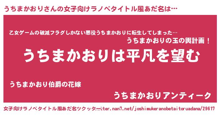 | 男性向けラノベタイトル風あだ名 | 『ダンジョンにうちまかおりを求めるのは間違っているだろうか』 |