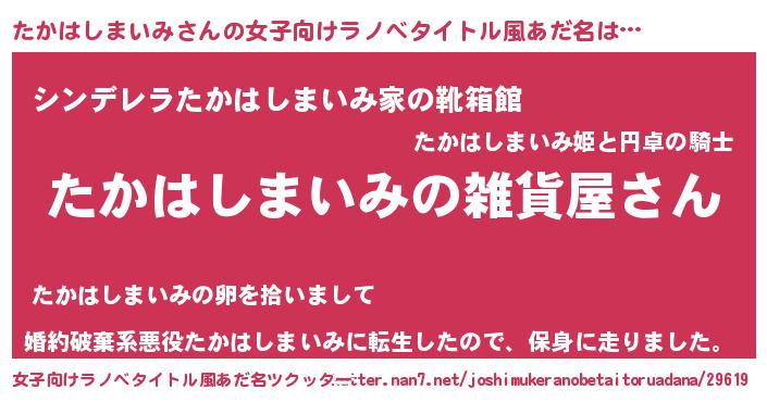 | 男性向けラノベタイトル風あだ名 | 『やはりたかはしまいみの青春ラブコメはまちがっている 』 |