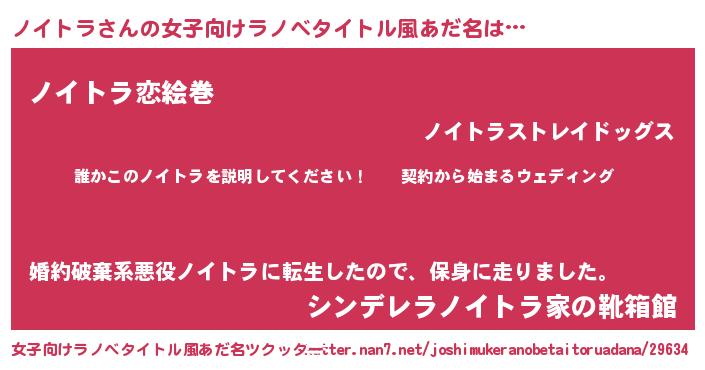 | 男性向けラノベタイトル風あだ名 | 『ノイトラアートオンライン』 |