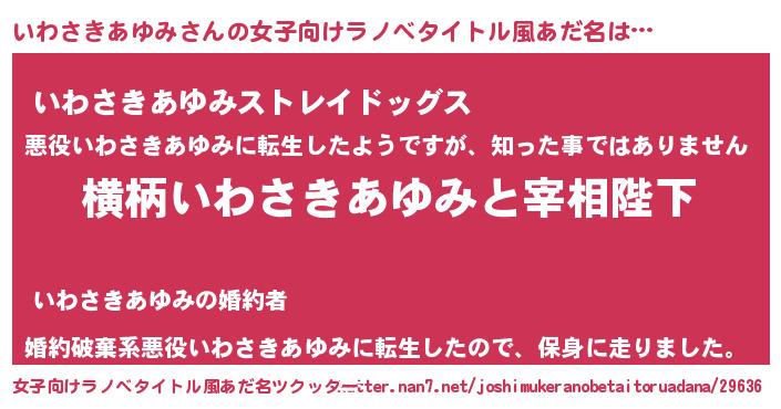 | 男性向けラノベタイトル風あだ名 | 『いわさきあゆみに滅ぼされるだけの簡単なお仕事です』 |