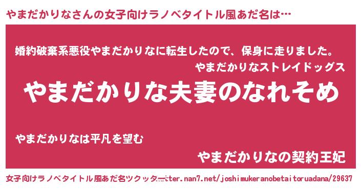 | 男性向けラノベタイトル風あだ名 | 『おまえをオタクにしてやるから、俺をやまだかりなにしてくれ! 』 |