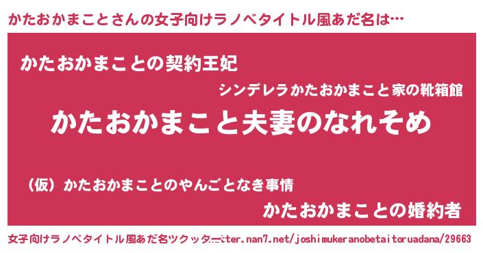 | 男性向けラノベタイトル風あだ名 | 『おまえをオタクにしてやるから、俺をかたおかまことにしてくれ! 』 |