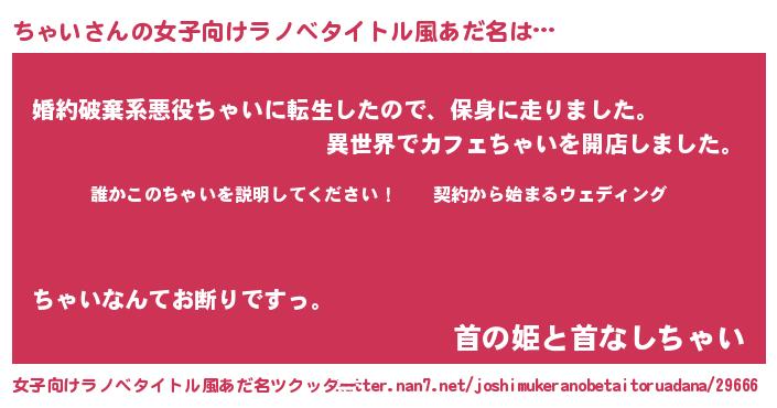 | 胡散臭い通販商品みたいなあだ名 | 『億万長者になれるブレスレット…その名も「ちゃい」』 |