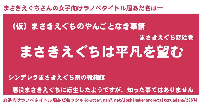 | 胡散臭い通販商品みたいなあだ名 | 『信頼と実績のサプリメント…その名も「まさきえぐち」』 |