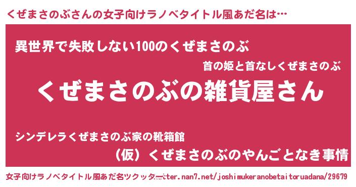 | 男性向けラノベタイトル風あだ名 | 『やはりくぜまさのぶの青春ラブコメはまちがっている 』 |