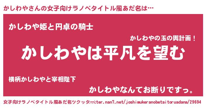| 胡散臭い通販商品みたいなあだ名 | 『信頼と実績のペンダント…その名も「かしわや」』 |
