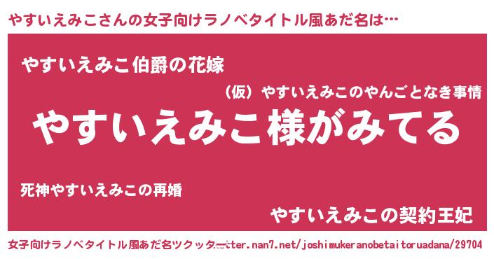 | ポケモン風あだ名 | 『ヒヤスイエミコ』『ヤスイダネ』 |