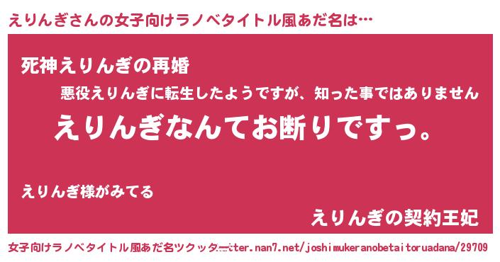 | 男性向けラノベタイトル風あだ名 | 『魔法科高校のえりんぎ』 |