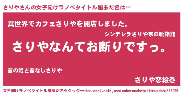 | 意味不明あだ名 | 『自称さりや』『永久保存さりや』 |