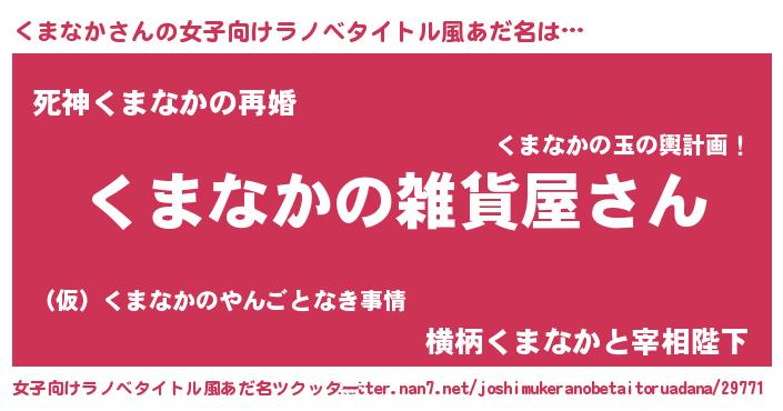 | 男性向けラノベタイトル風あだ名 | 『やはりくまなかの青春ラブコメはまちがっている 』 |
