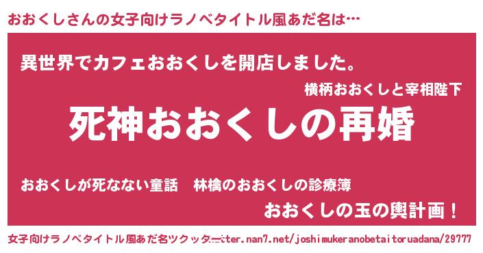 | 男性向けラノベタイトル風あだ名 | 『ノーゲーム・ノーオオクシ』 |