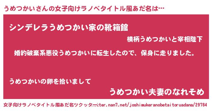 | 男性向けラノベタイトル風あだ名 | 『転生したらうめつかいだった件』 |